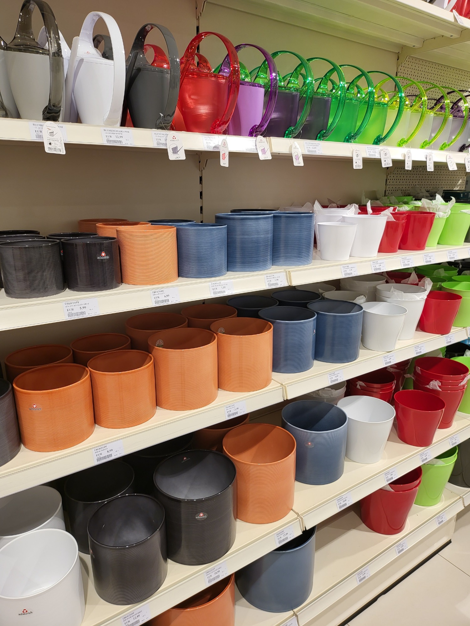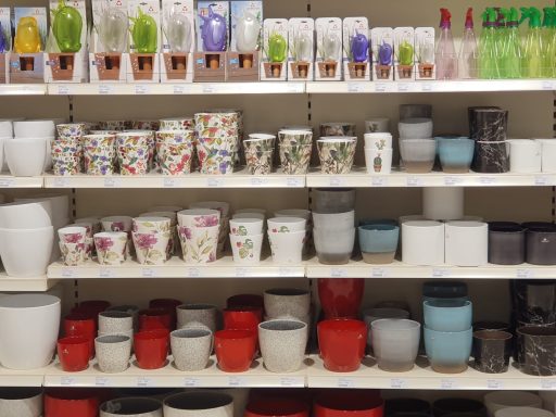 Die Bunte vielfalt von Gartenwerkzeugen, Pflanztöpfen, Übertöpfen uvm. wird ihnen den Atem rauben.
